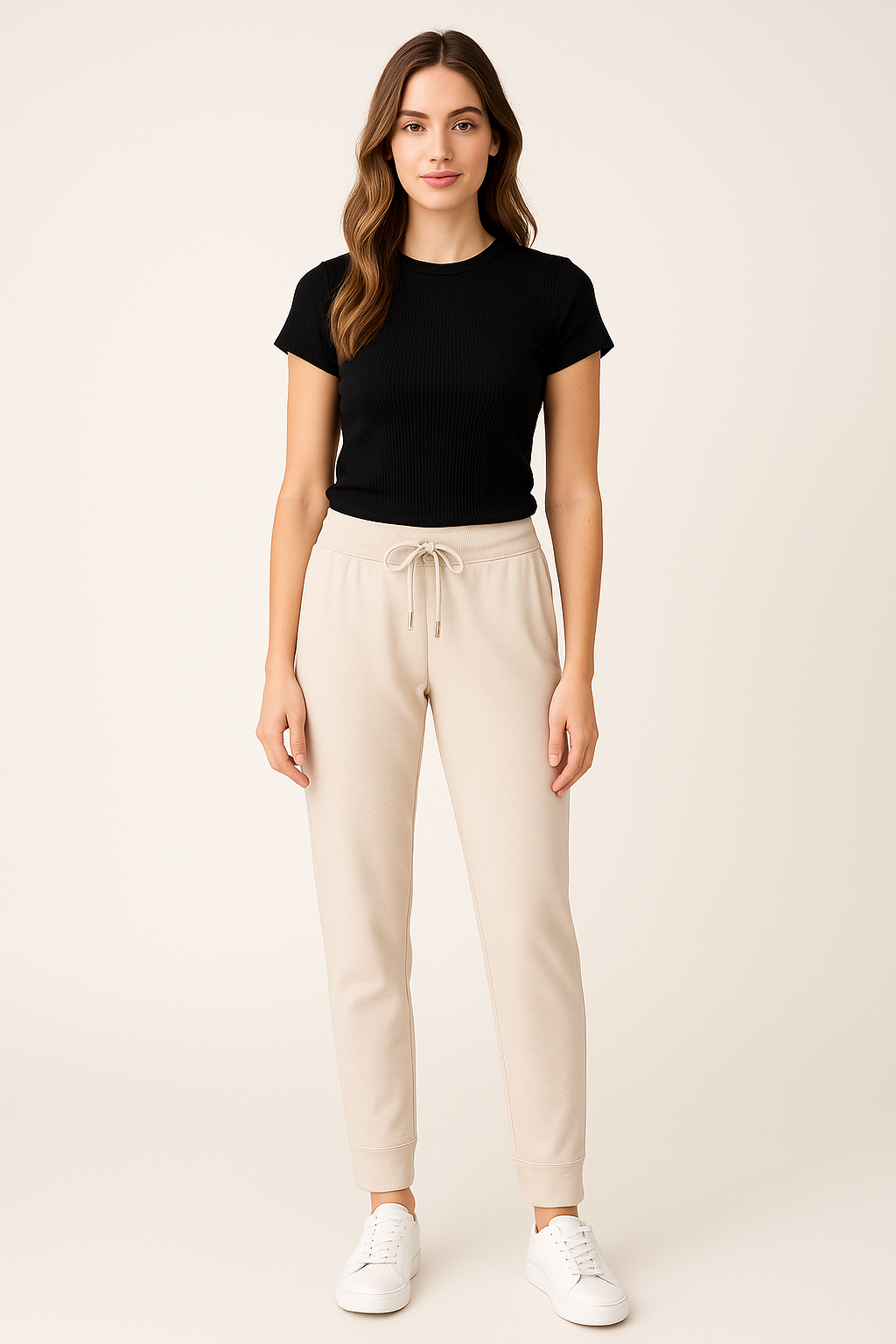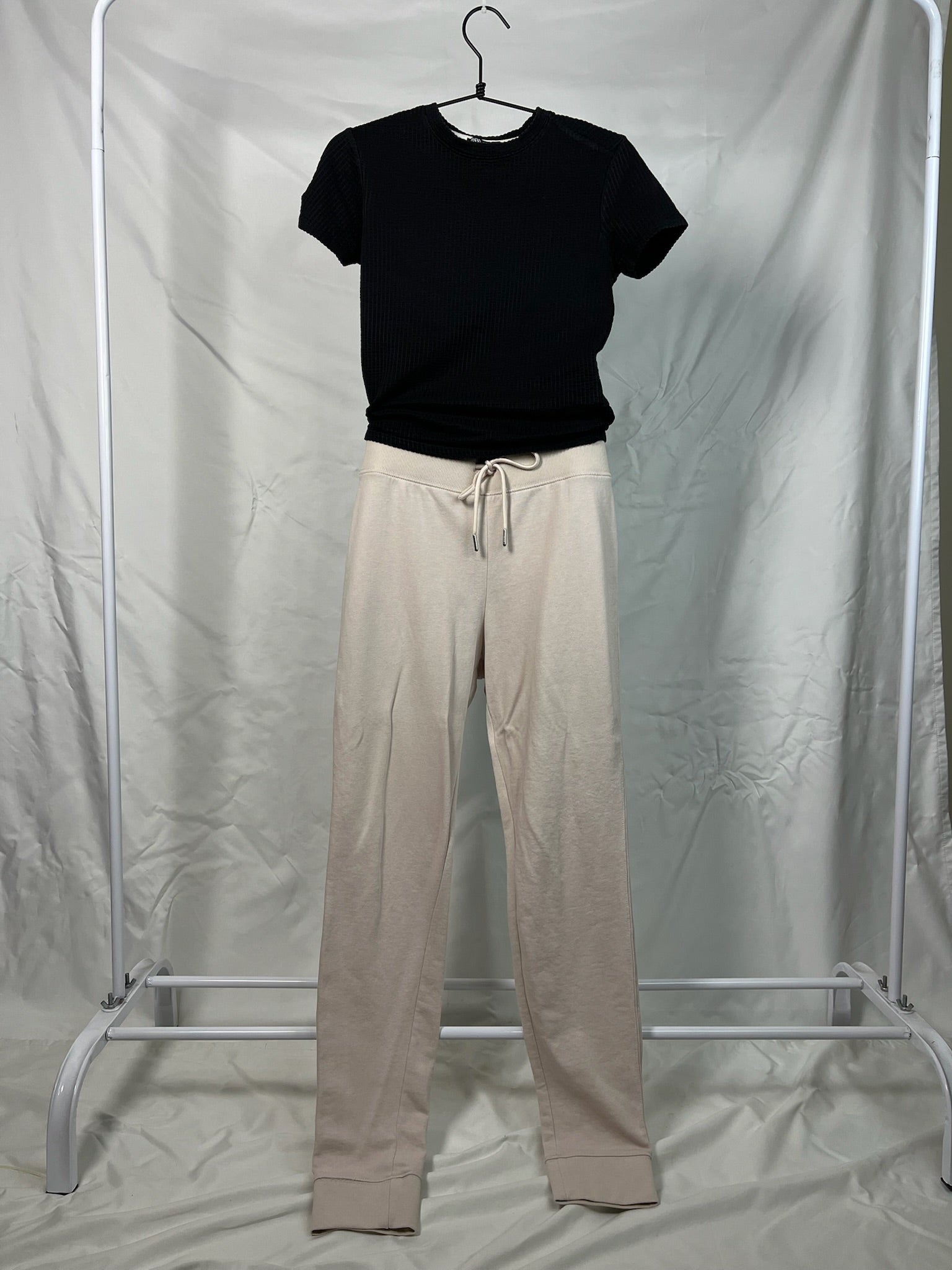 Nude pink drawstring waistband with pockets straight leg basic sweatpants.