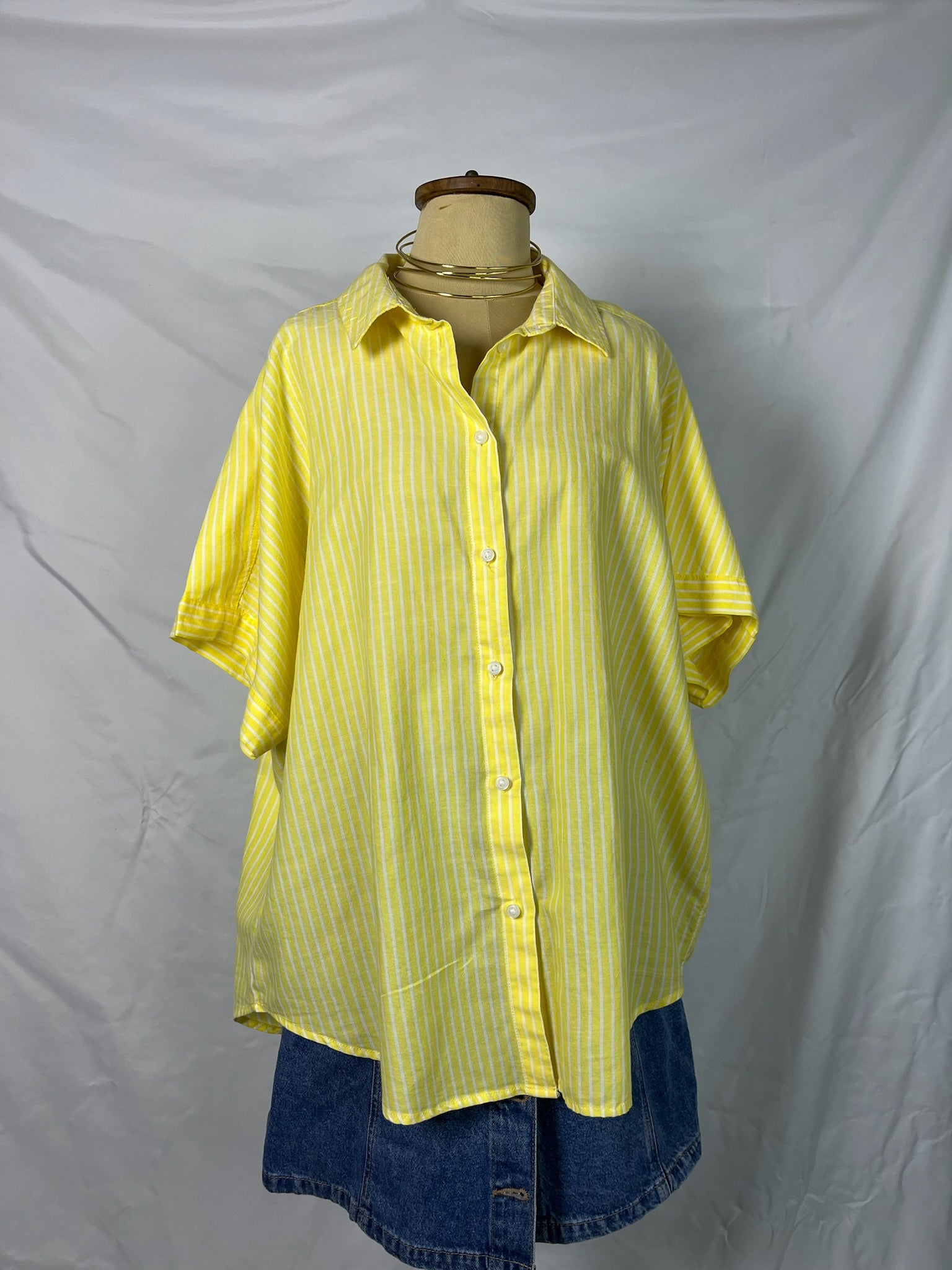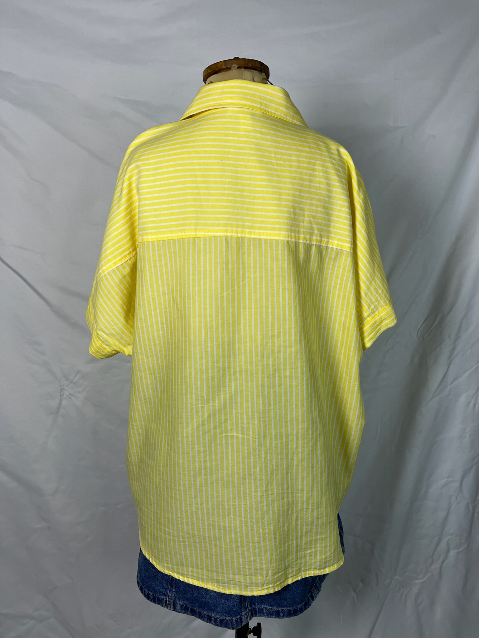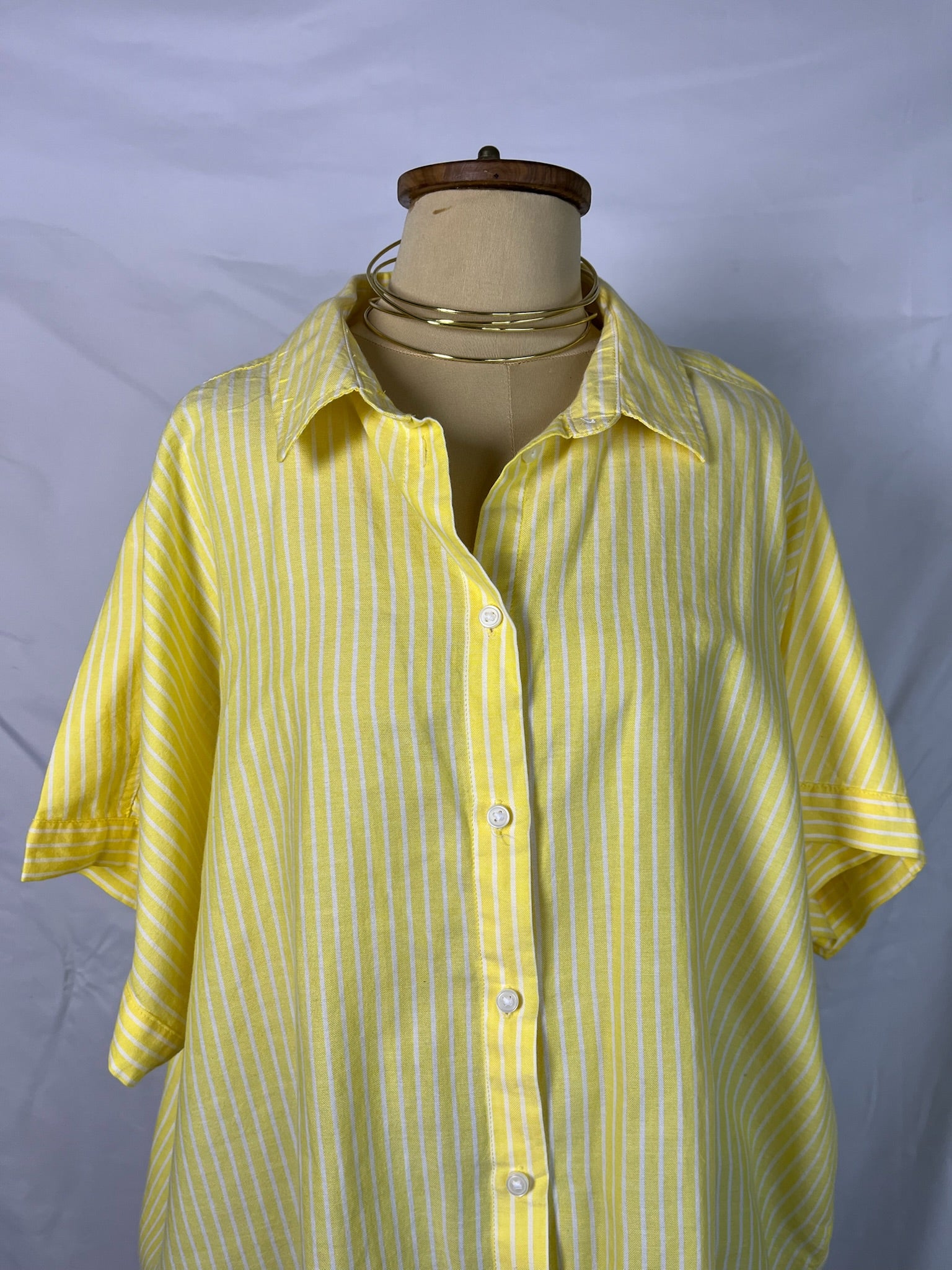 Yellow with white stripes short sleeves collared button up lightweight shirt.