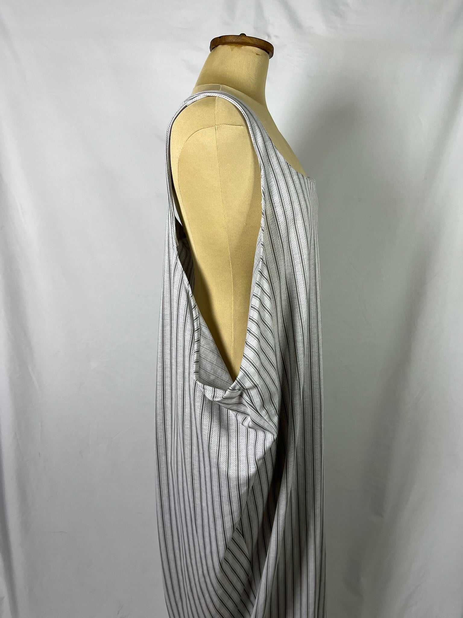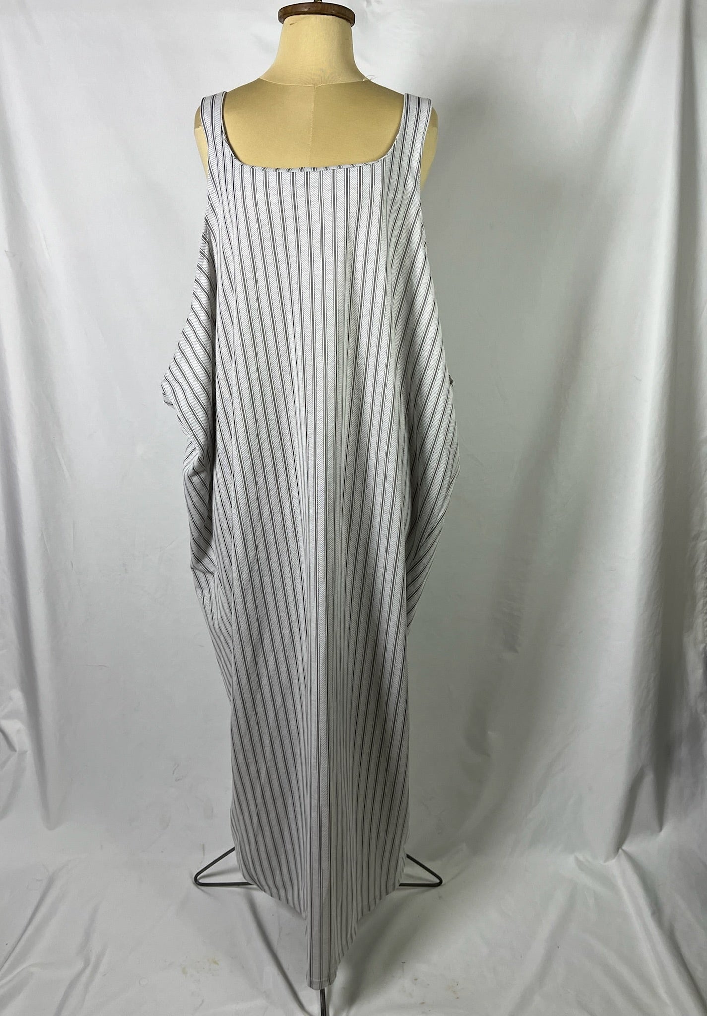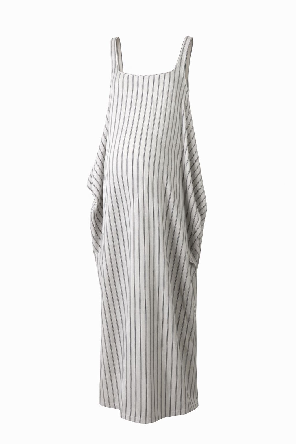 Gray pinstripe cut sleeves, deep squared neckline maxi length maternity dress.