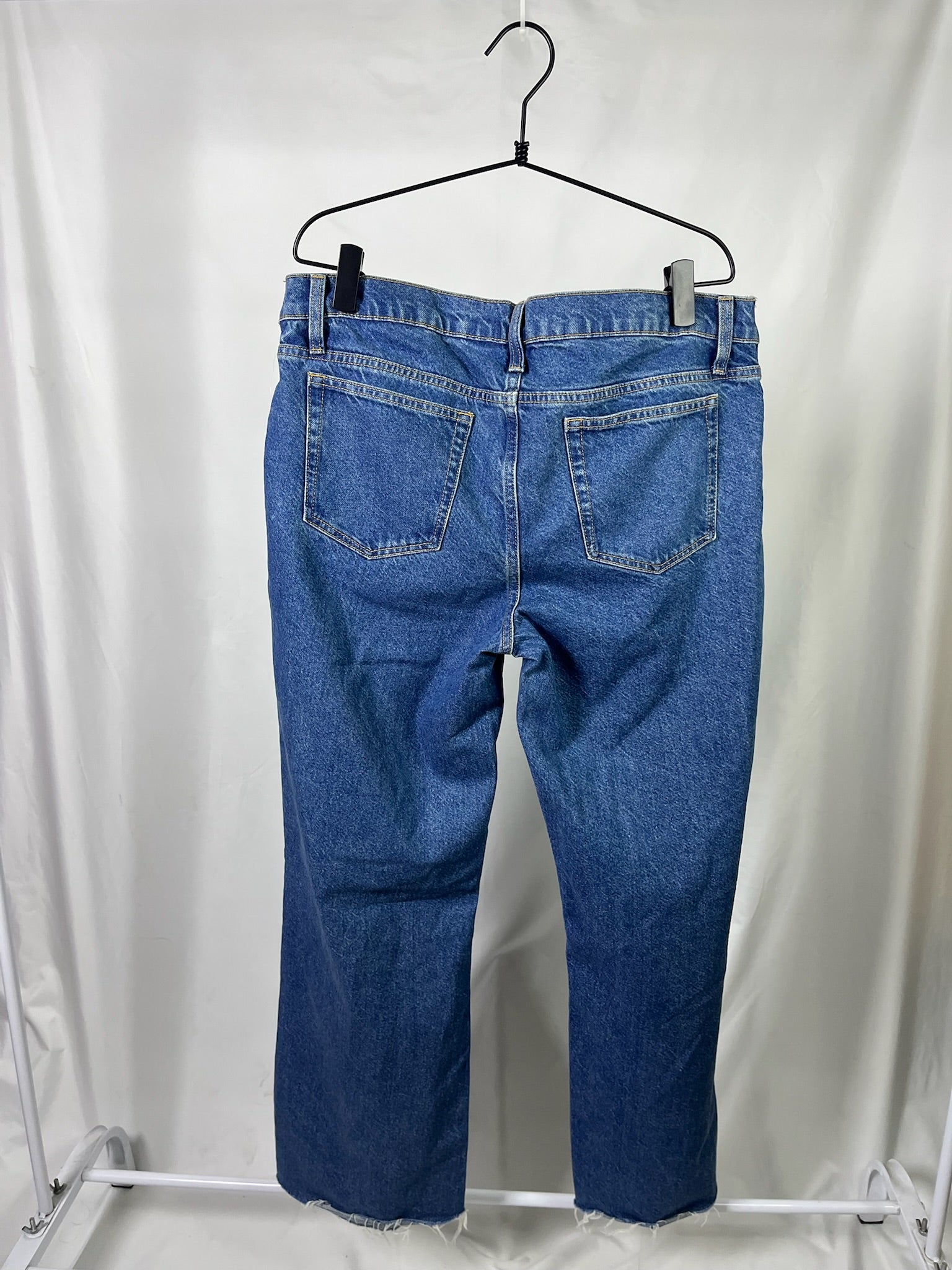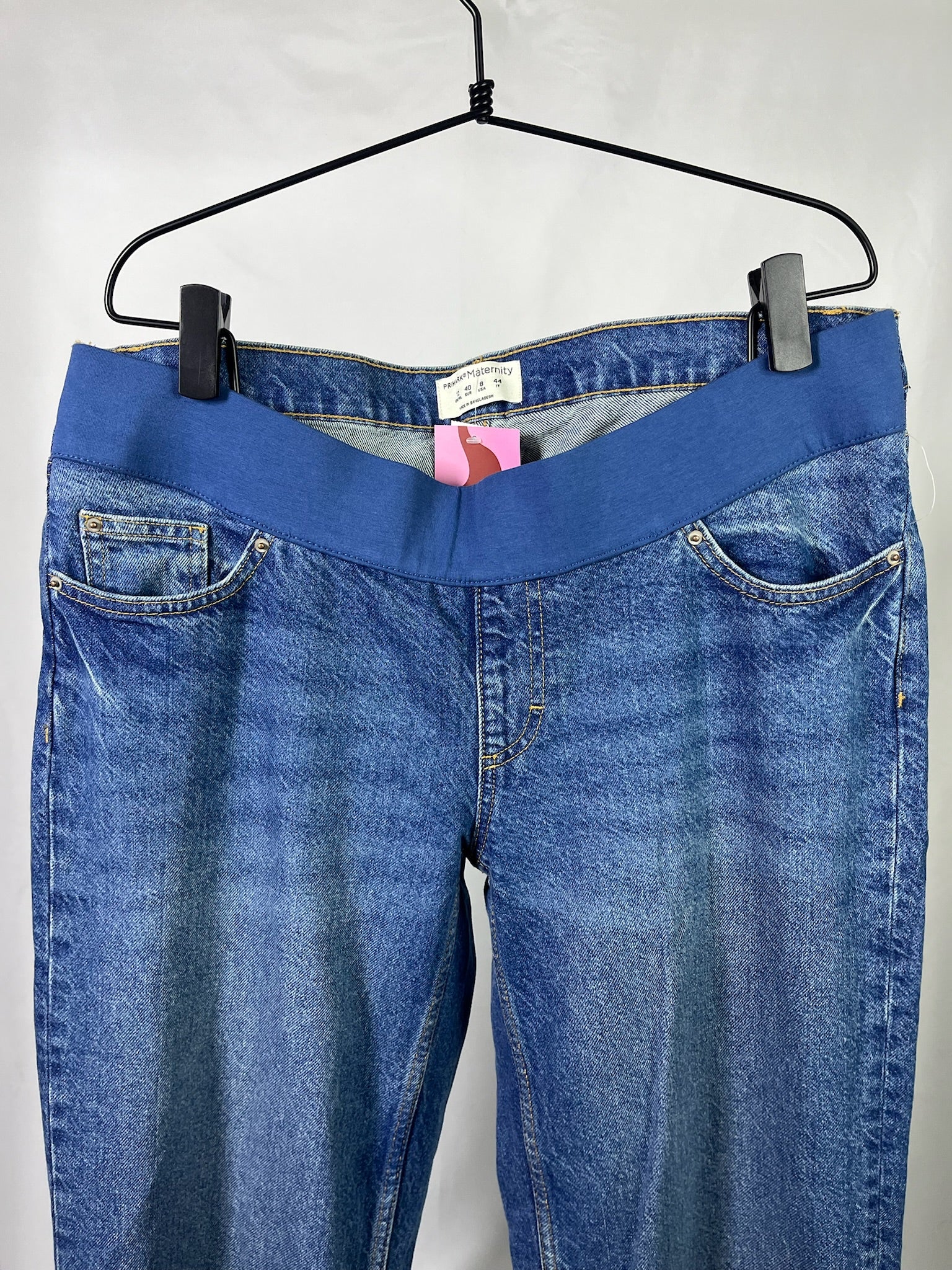 Regular blue wide-leg cut, 5 pocket full length maternity denim jeans.