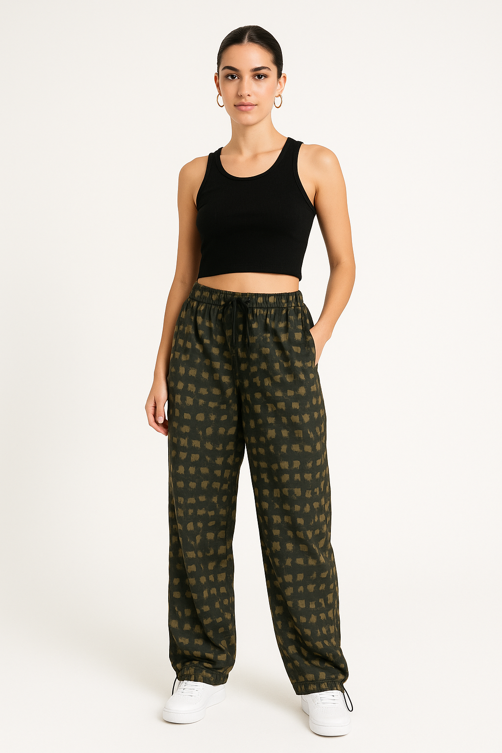 Khaki and beige parachute camouflage pants with pockets (runs large)