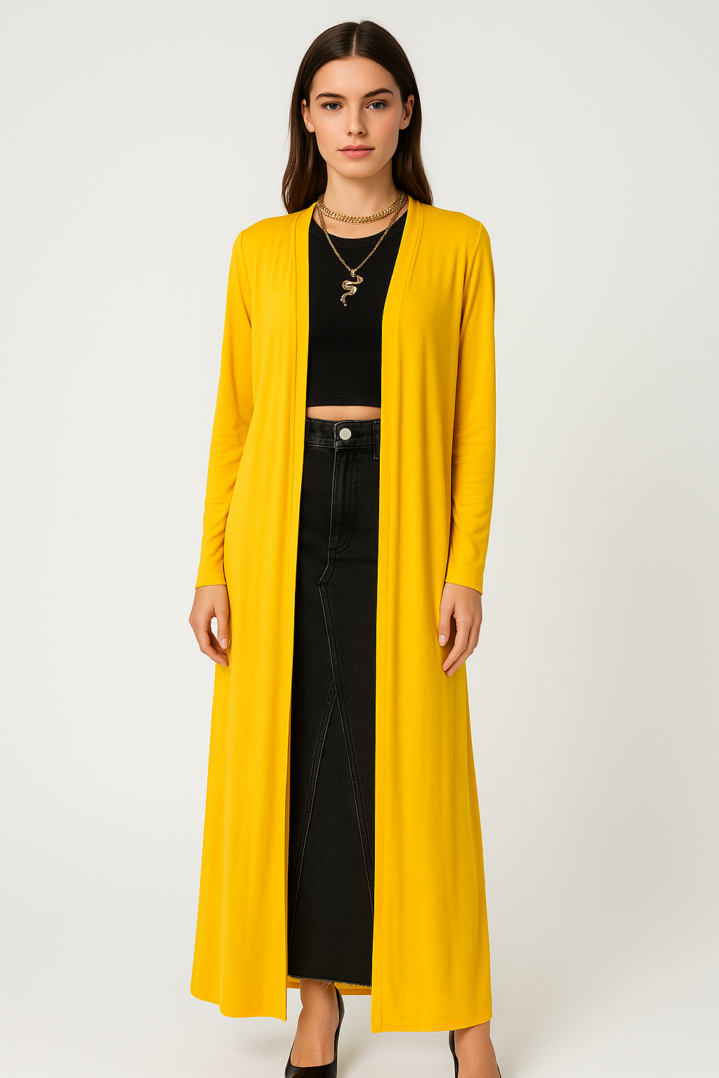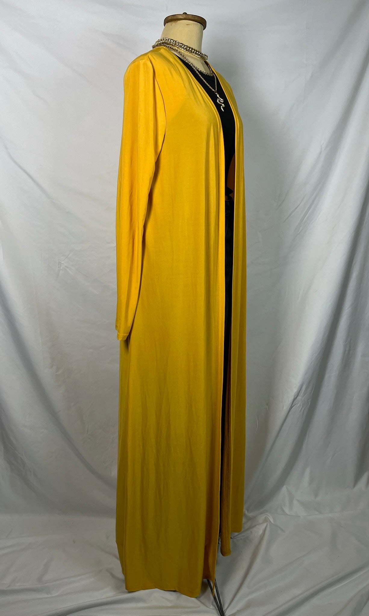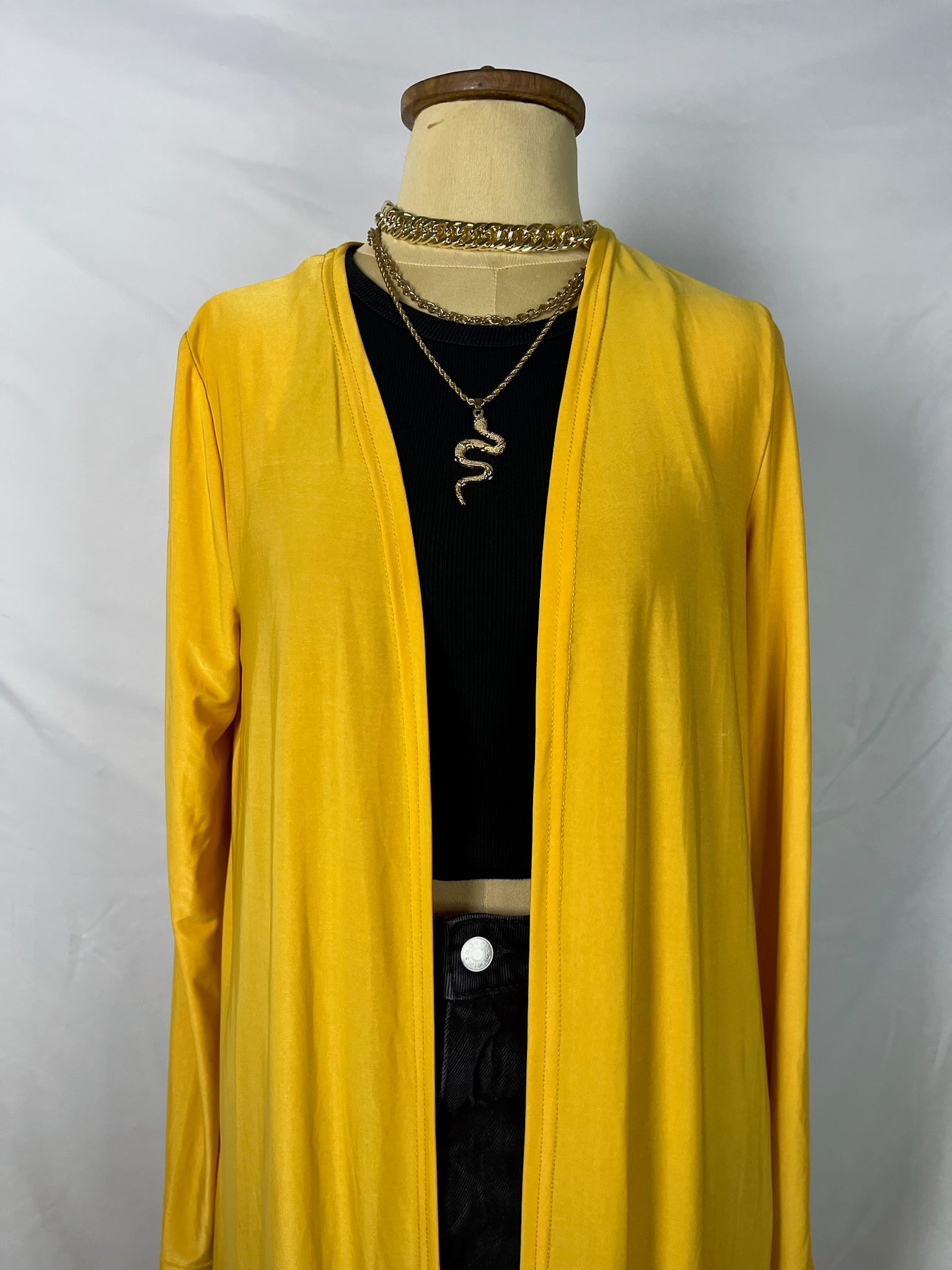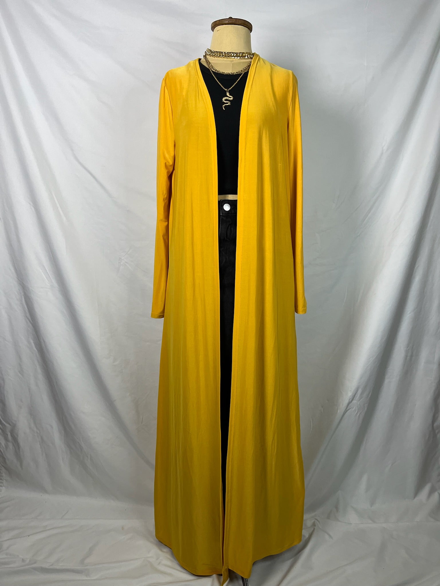 Mustard yellow long sleeves soft flowy full length open front cardigan.