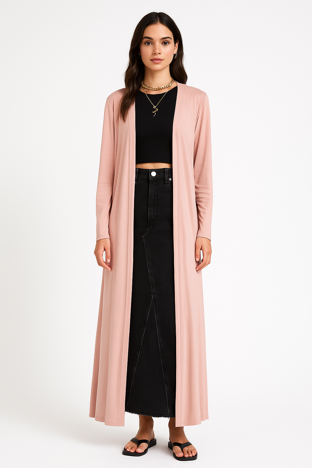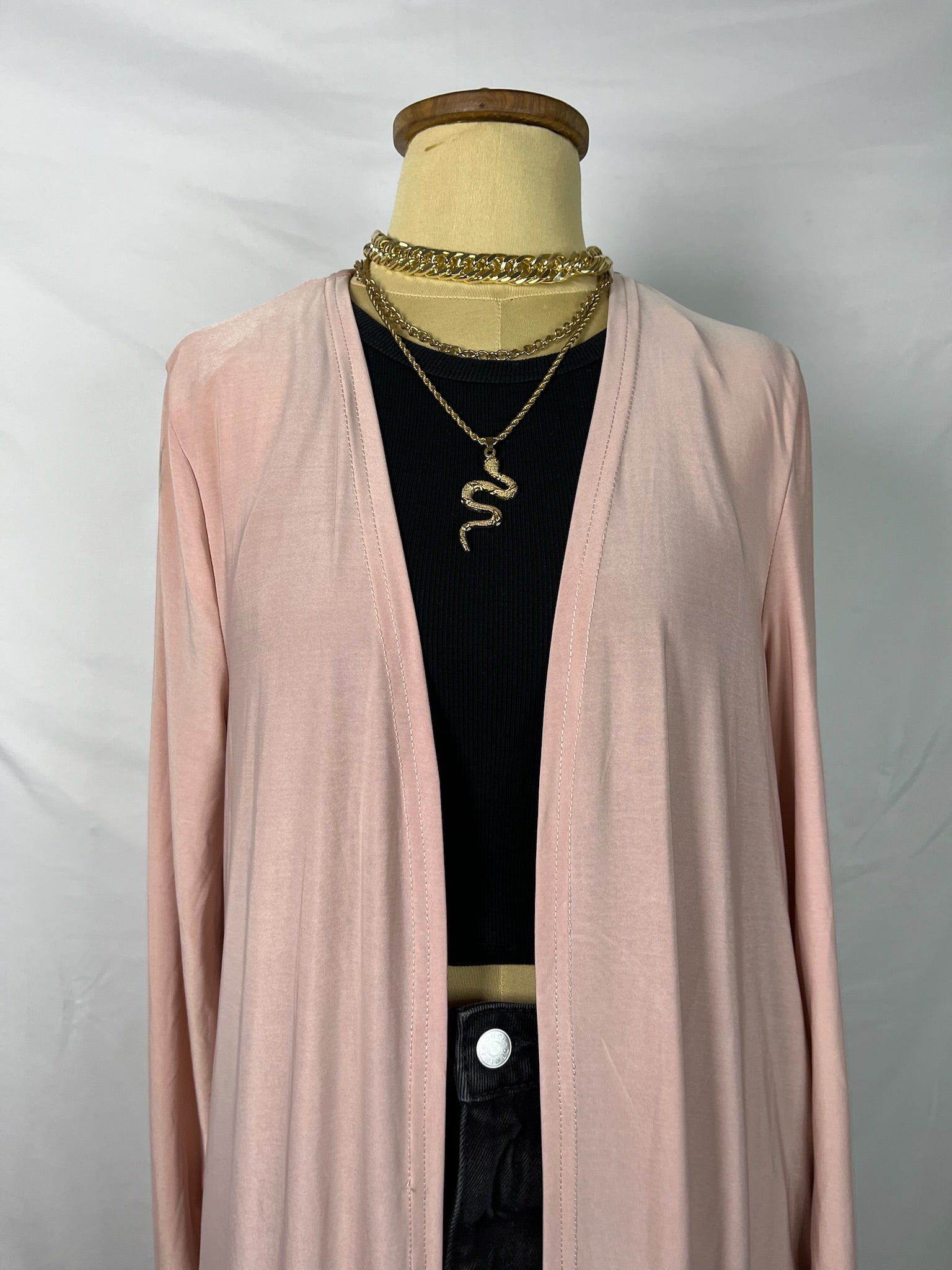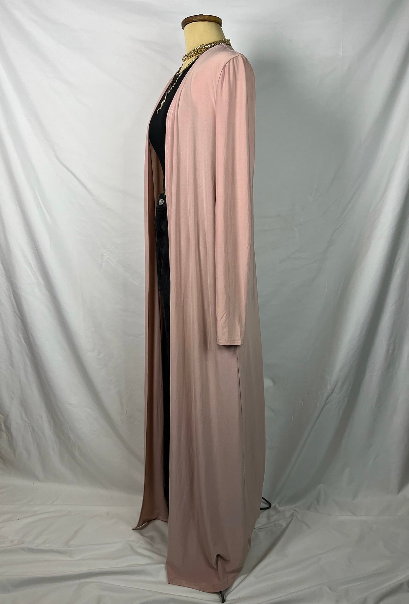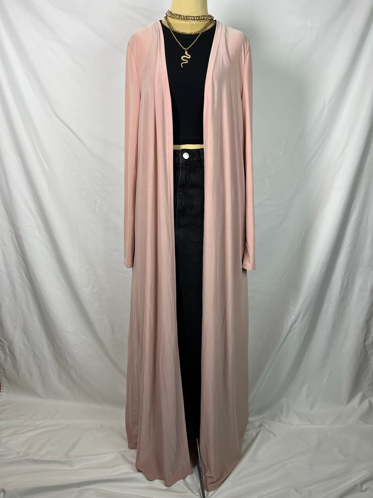 Blushy pink long sleeves soft flowy full length open front cardigan.