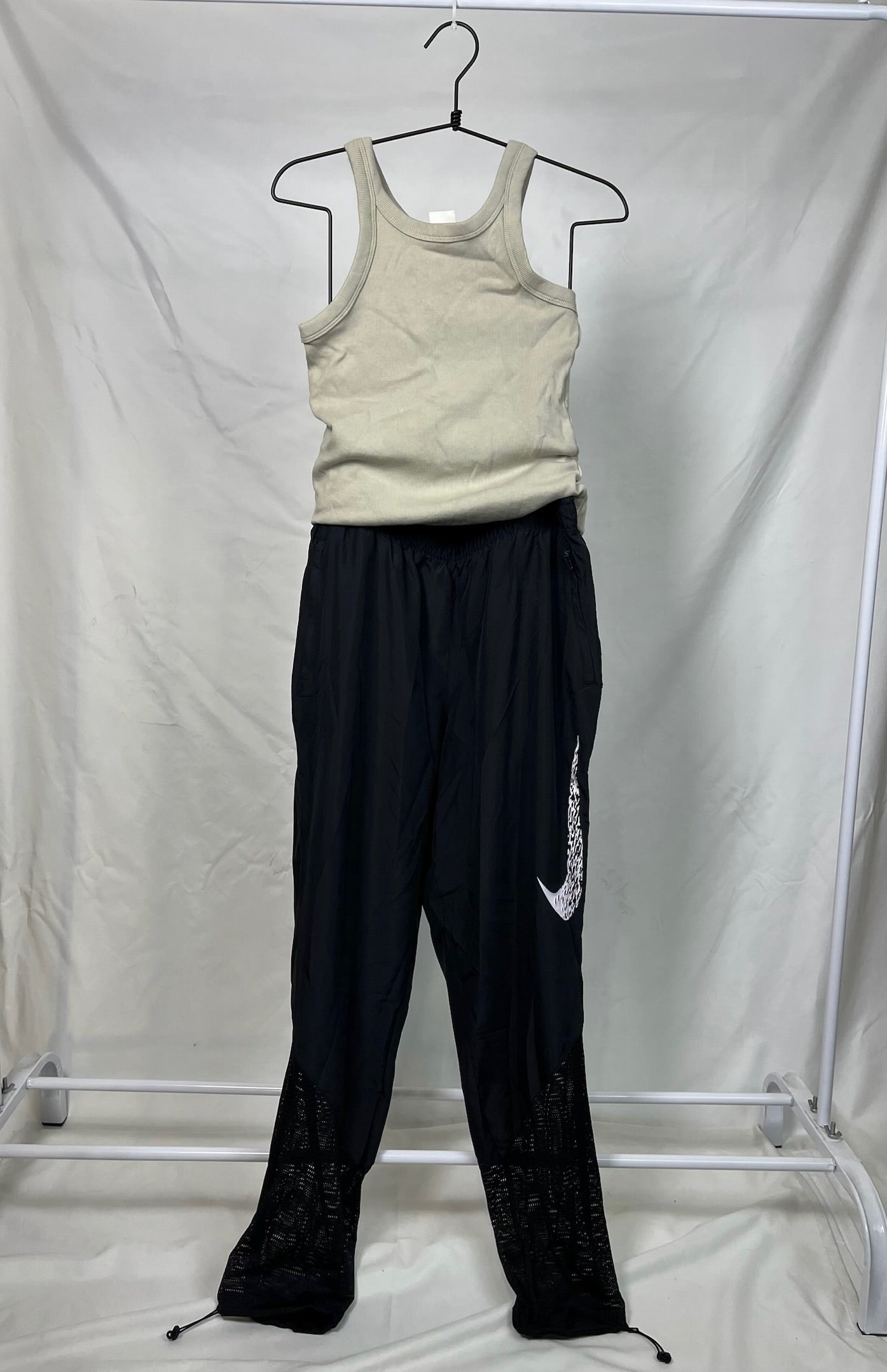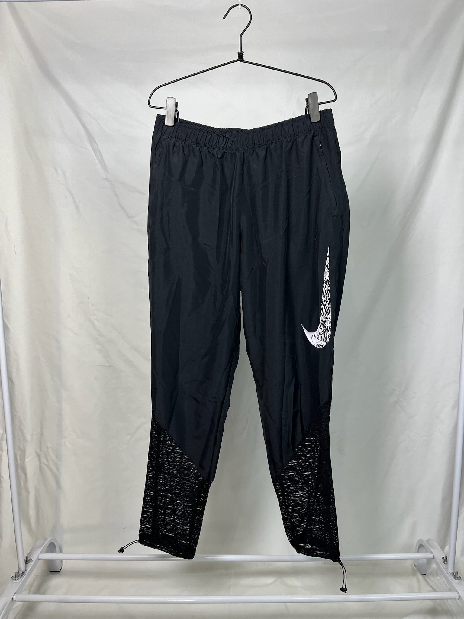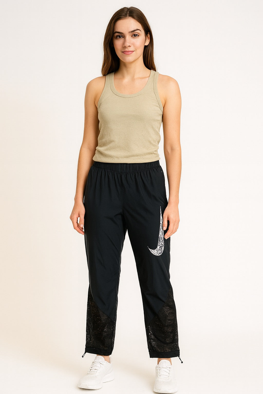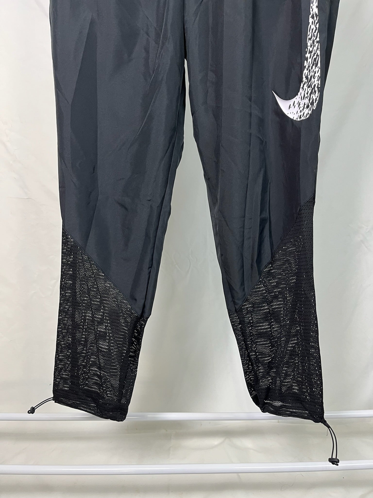 Black designed with a breathable mesh panels at the bottom and bold textures swoosh logo daily workout sweatpants.