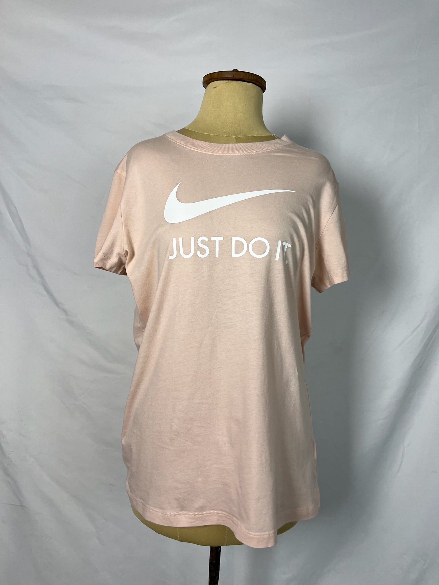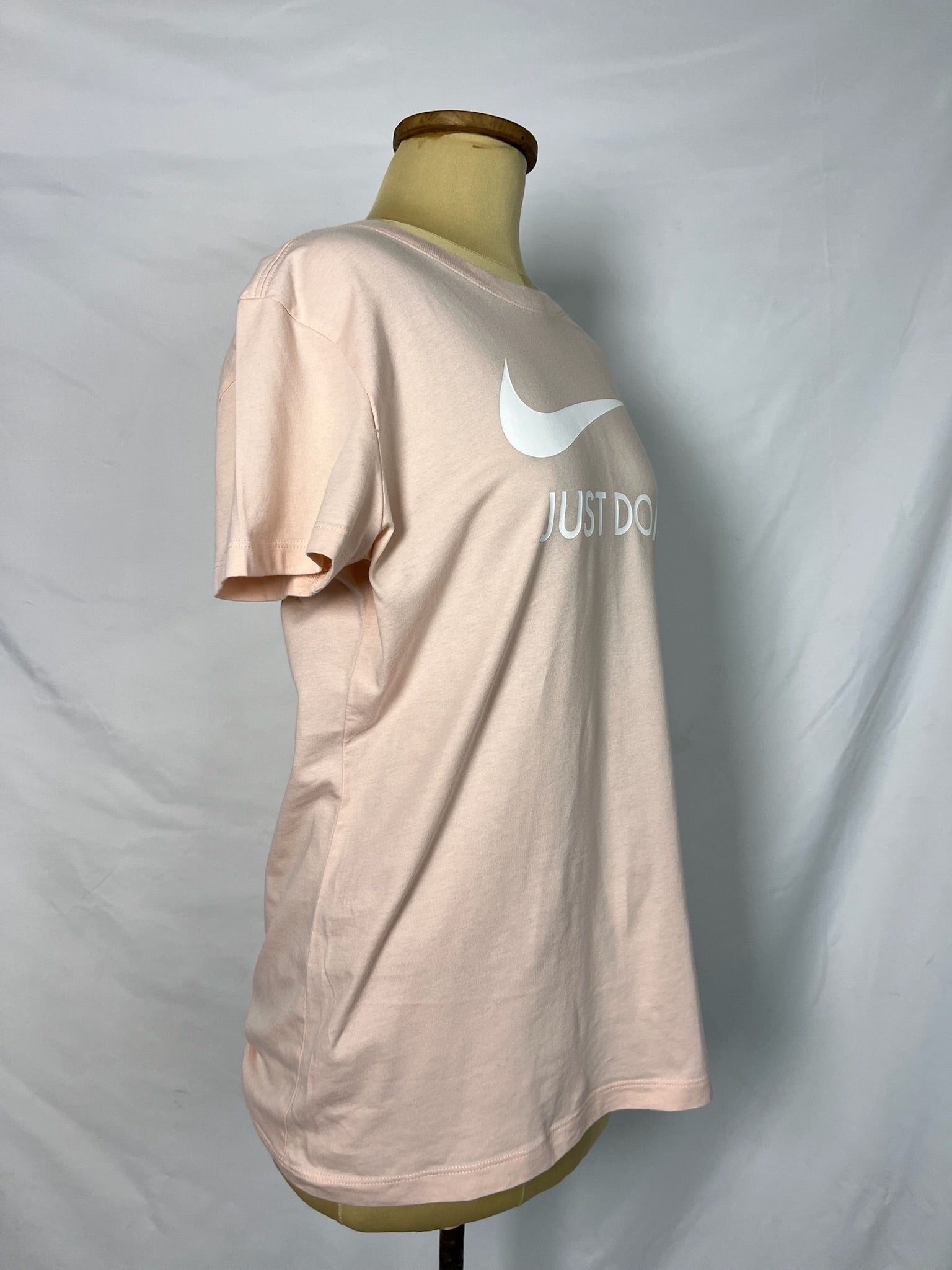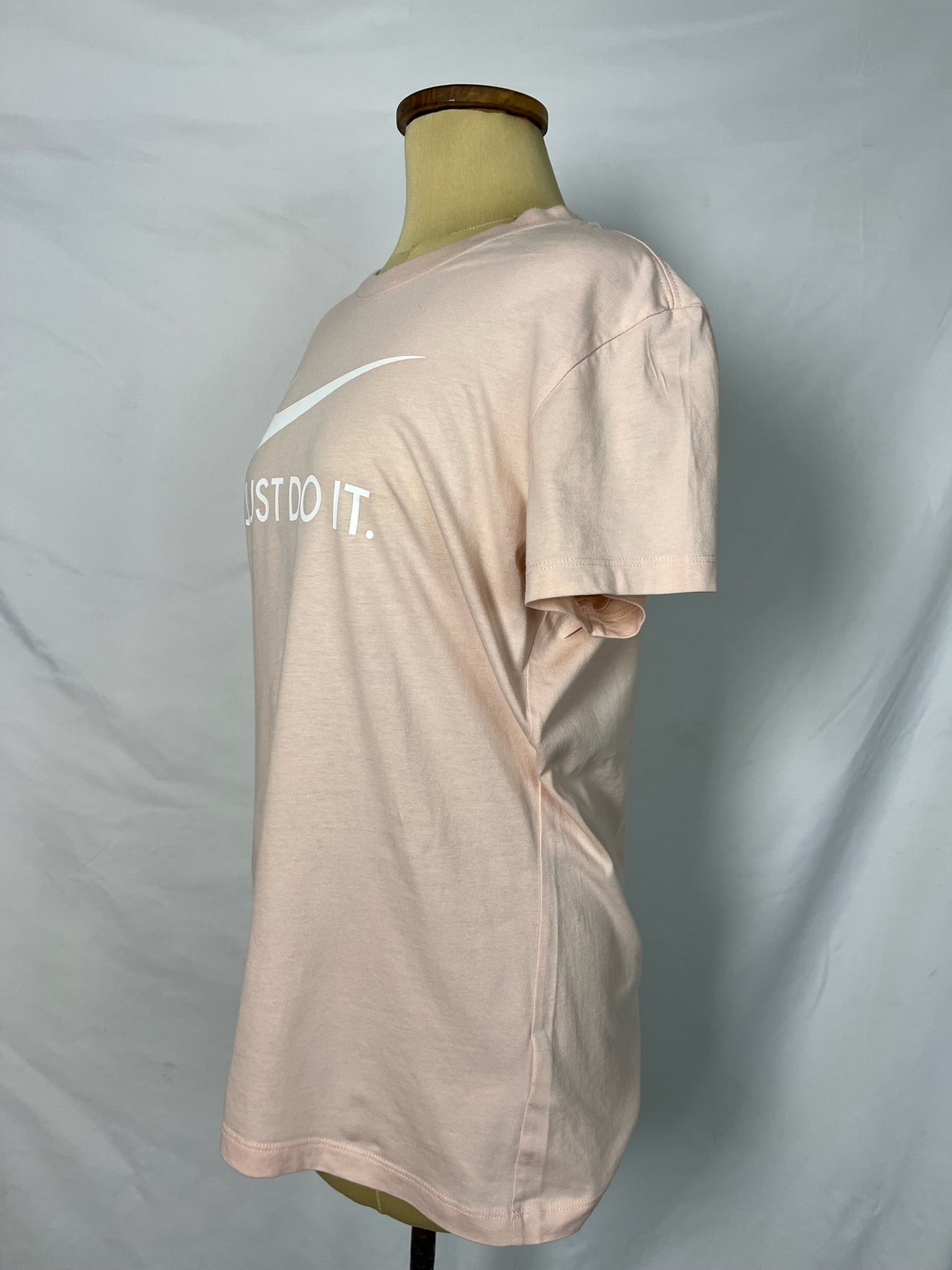 Pastel pink short sleeves round neckline comfy fit swoosh front tee.