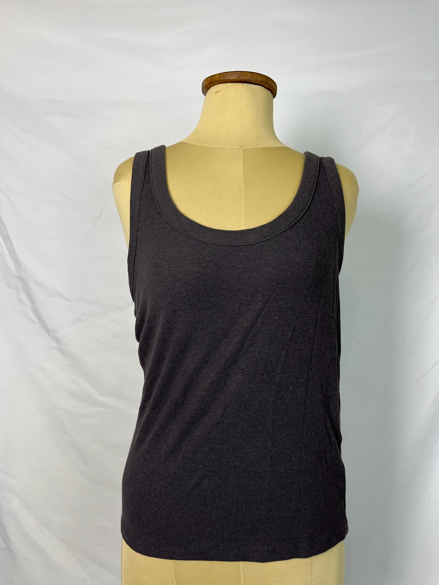 Charcoal ribbed fabric basic tank top.