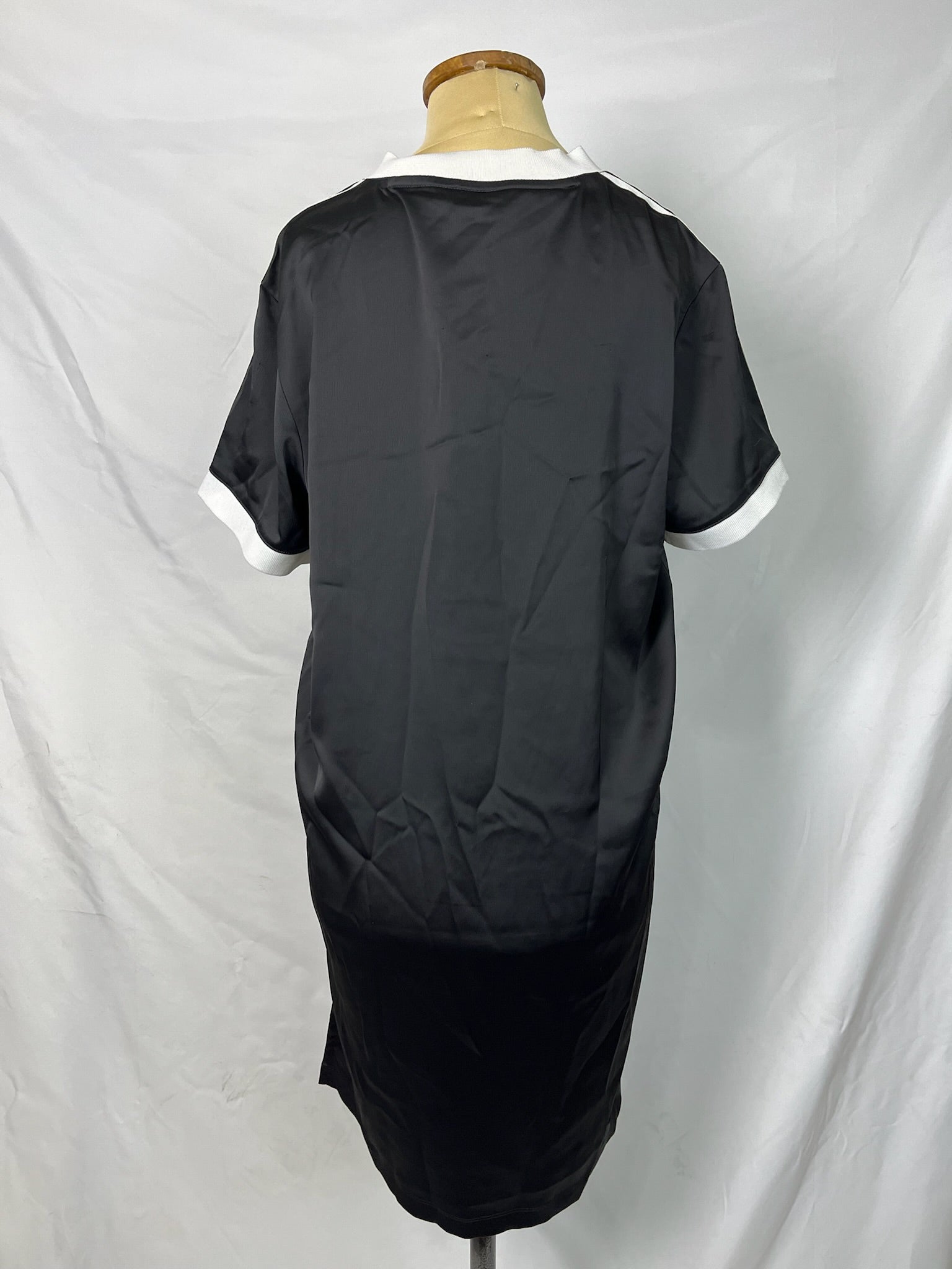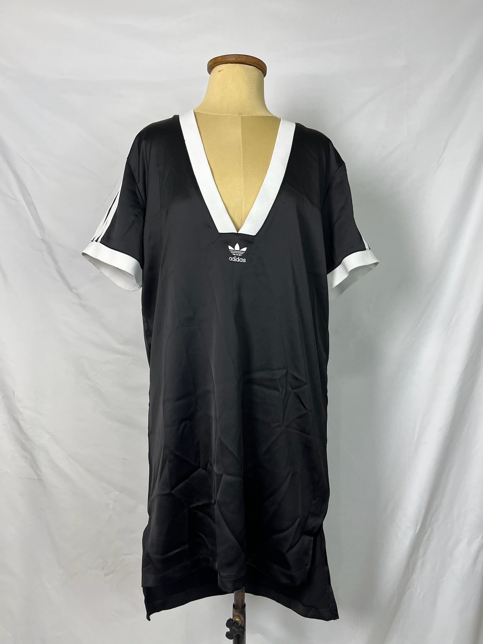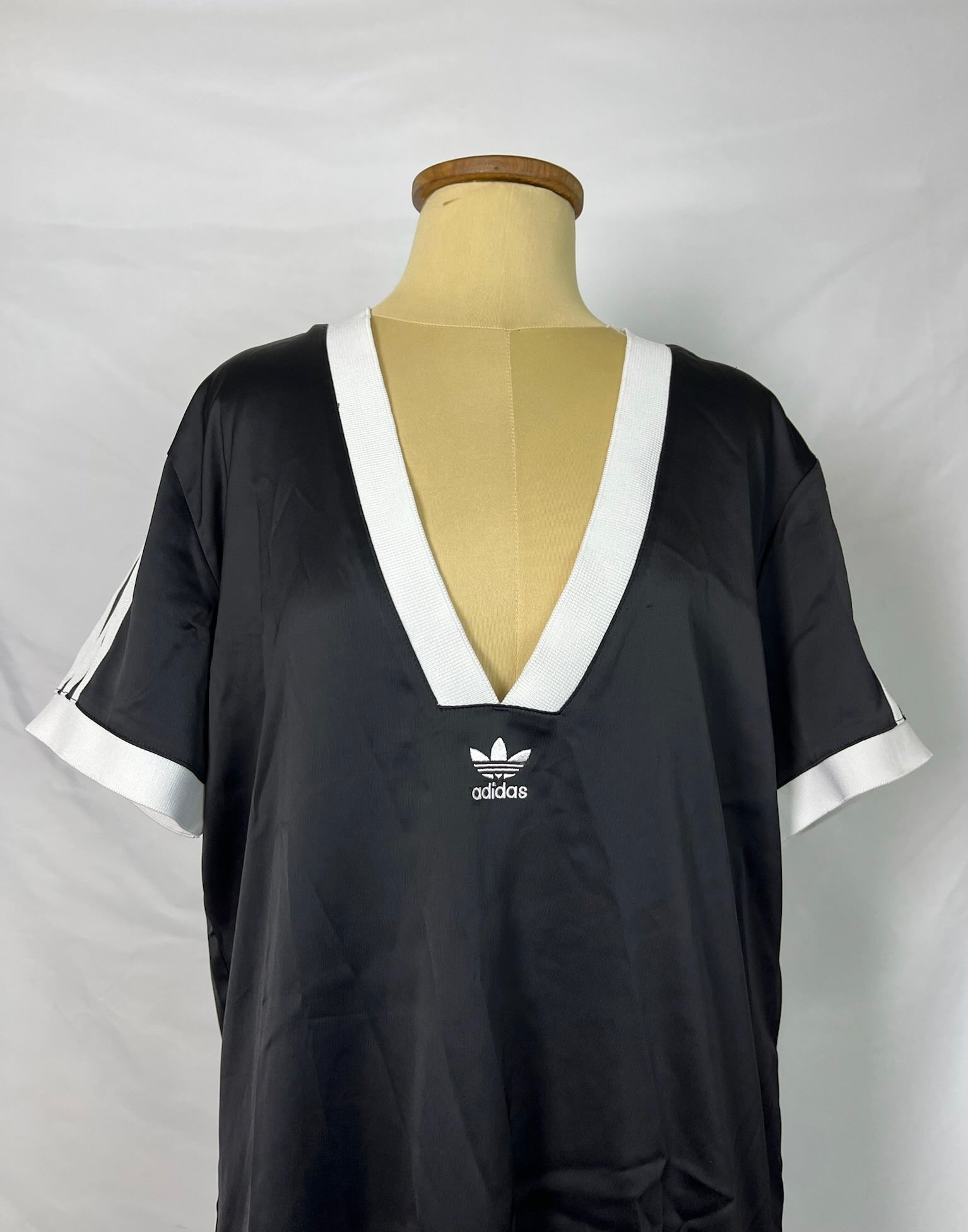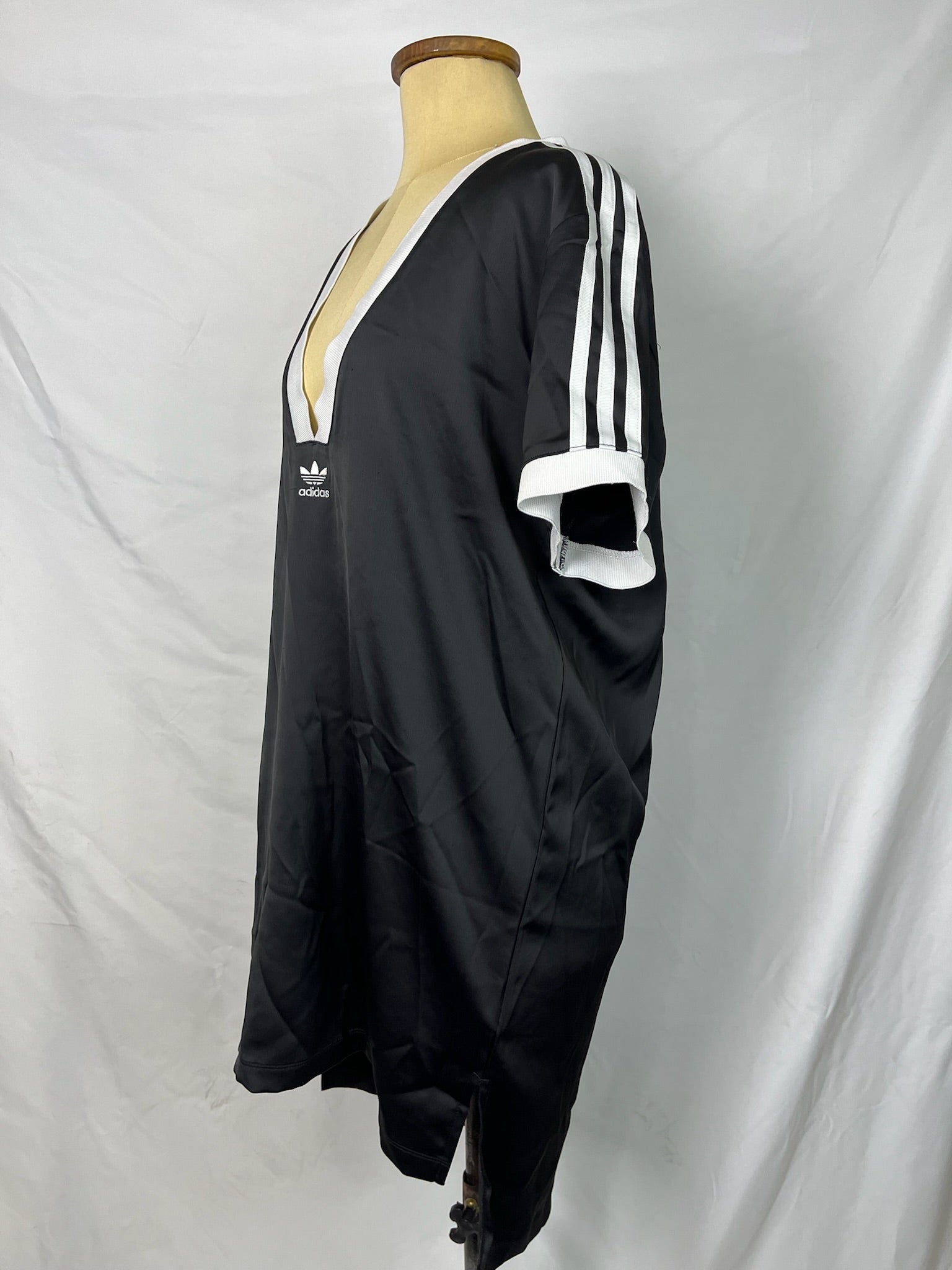 Adidas Black bold deep V neckline with crisp white trim with the signature three stripe sleeves oversized dress. Could fit medium.