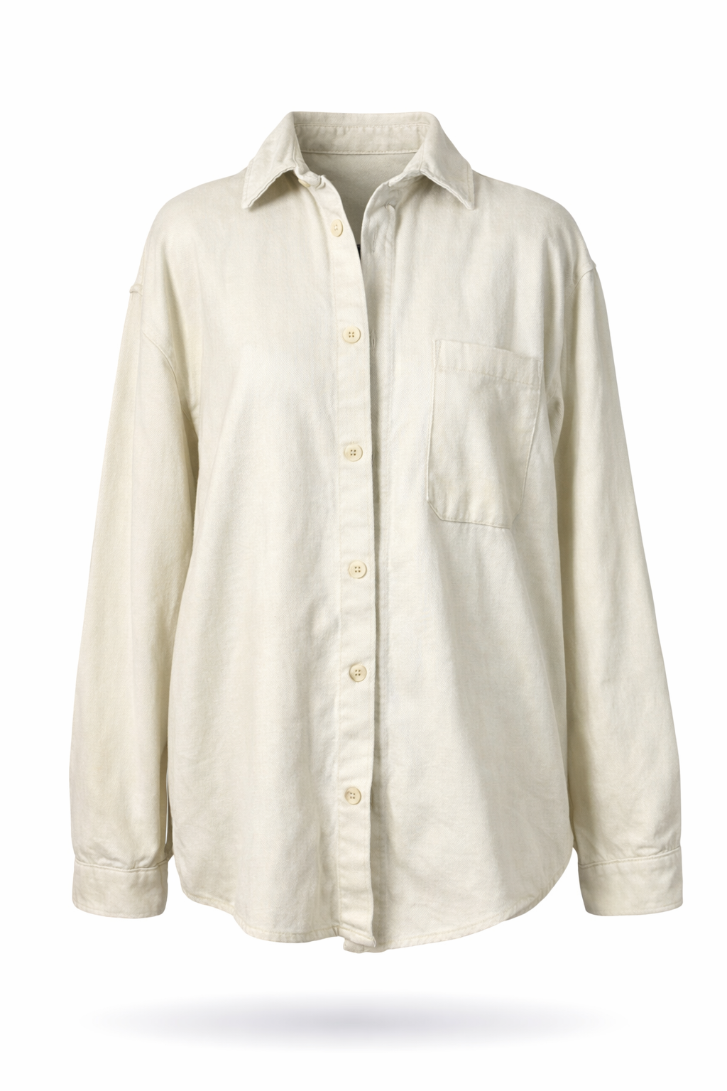 Cream single cheat pocket, cream toned buttons, sift comfy lightweight material, with curved hems jacket.